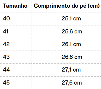 Tabela de Medidas